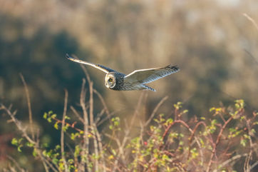 Like the little owl the short eared owl can mainly be seen at dawn and dusk but also quite commonly seen hunting during the daytime too.